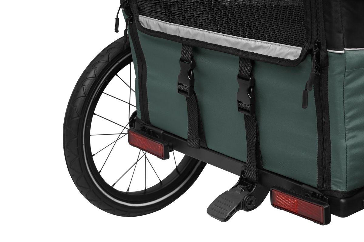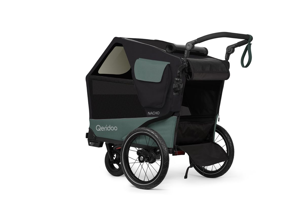 Odkryj przyczepkę dla psa Nacho, idealne rozwiązanie na przygody z czworonożnym przyjacielem. Wygodne legowisko, dwie smycze bezpieczeństwa i obszerne panele z siatki zapewniają przytulną atmosferę i optymalną cyrkulację powietrza. Dzięki zawieszeniu, pompowanym kołom spacerowym i praktycznemu systemowi zaczepowemu Becco możesz swobodnie podróżować, zarówno pieszo, jak i na rowerze. Duże tylne drzwi i dodatkowe wejście z przodu umożliwiają psu łatwe wsiadanie i wysiadanie.