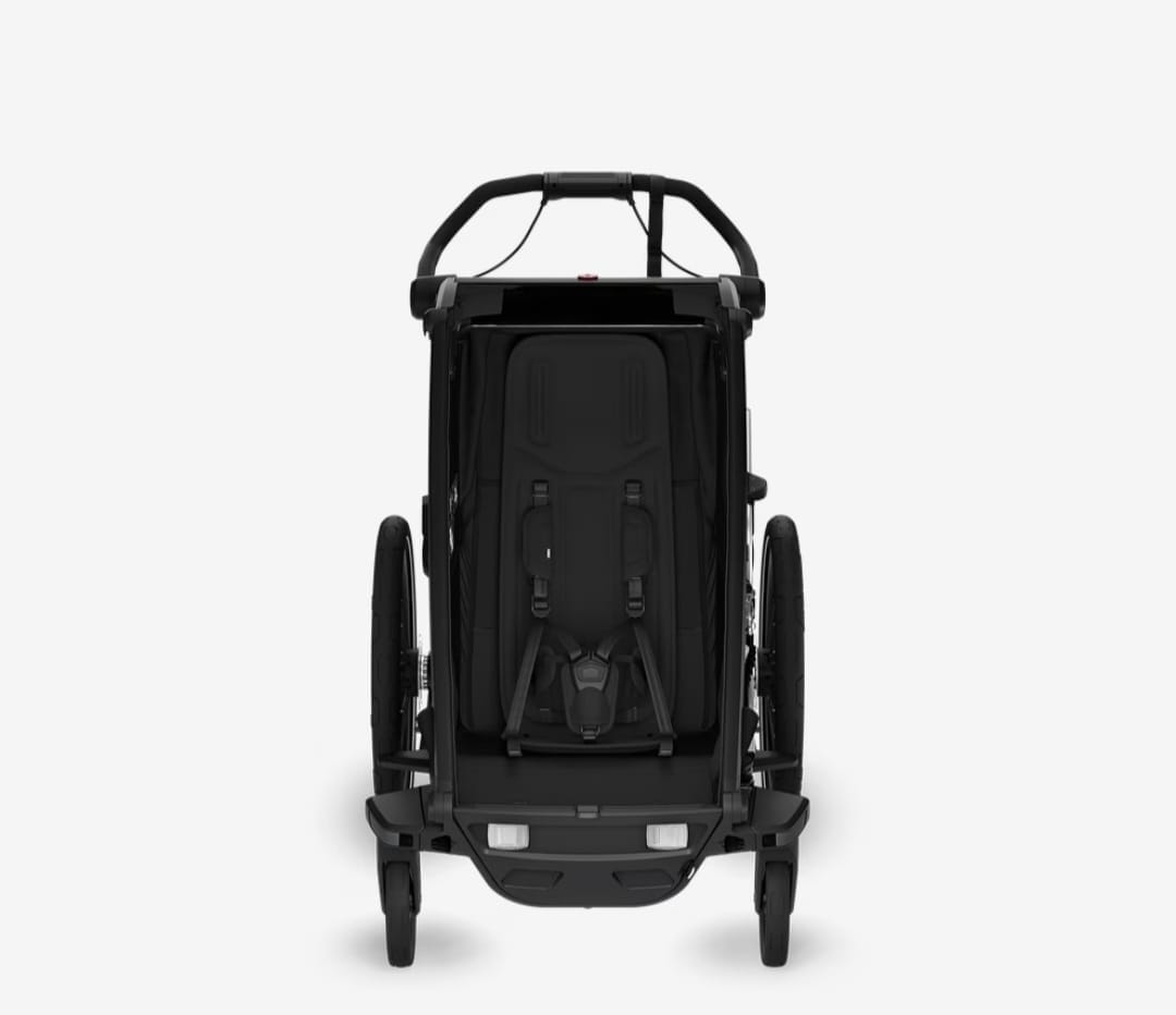 Na modułowym siedzisku można przewozić jedno dziecko na środku lub dwoje dzieci po dwóch stronach przyczepki. Funkcja wygodnego odchylania jedną ręką i miękkie wyściełane siedziska pozwalają dzieciom wygodnie drzemać podczas przejażdżki